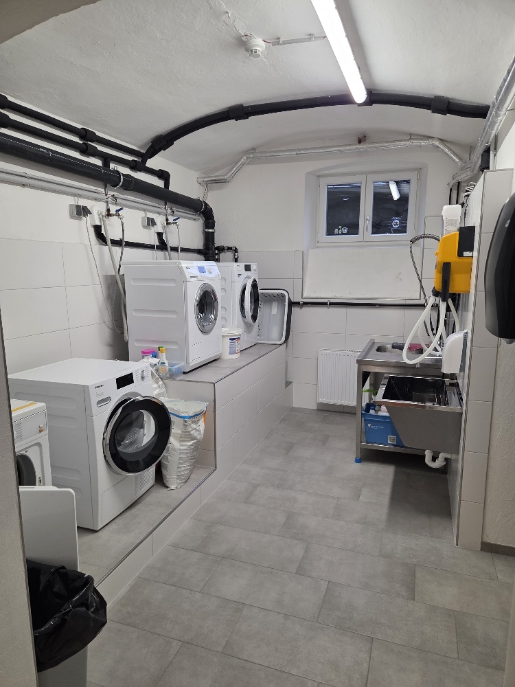 Dieser befindet sich direkt beim Stiegenaufgang zur Küche (Westseite - Blickrichtung kath. Kirche) zwischen der Kücheneingangstüre und der Anlieferungstüre.